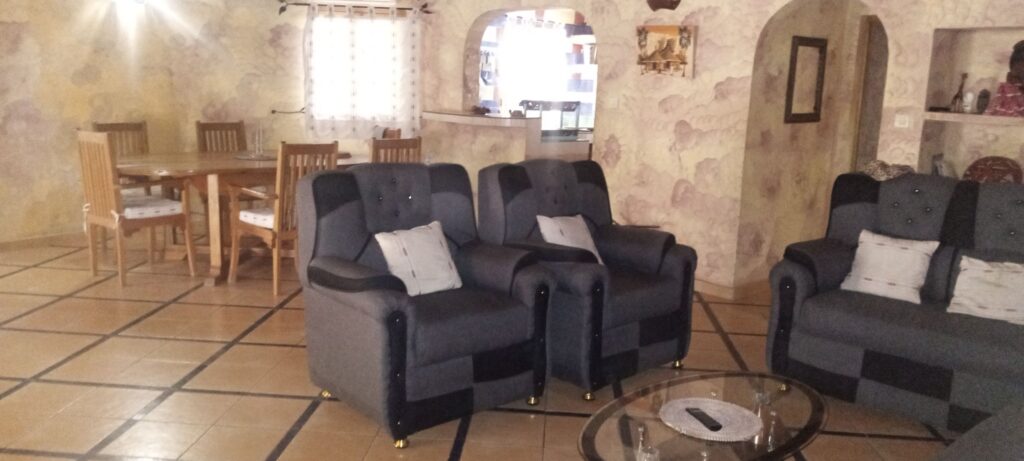 Voici une maison totalement adaptée au climat chaud du Sénégal, contrairement à la plupart des villas,certes belles dans l ensemble, mais extrêmement chaudes une fois à l intérieur,cette jolie et typique CASE AFRICAINE à environ 500 Mt de la route principale,pas loin de la plage,